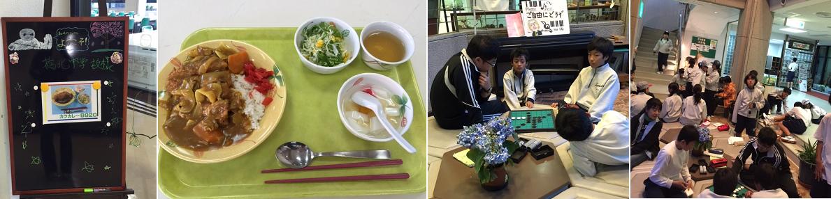 夕食はカツカレーです。毎回食堂の入り口にはメニューのお知らせがでます。昼食を食べ過ぎたせいか、お替わりすることもありませんでしたが、美味しいカツカレーでした。夕食後、入浴を済ませ、お待ちかねのナイトハイクです。ロビーには早くからみんな集まっています。