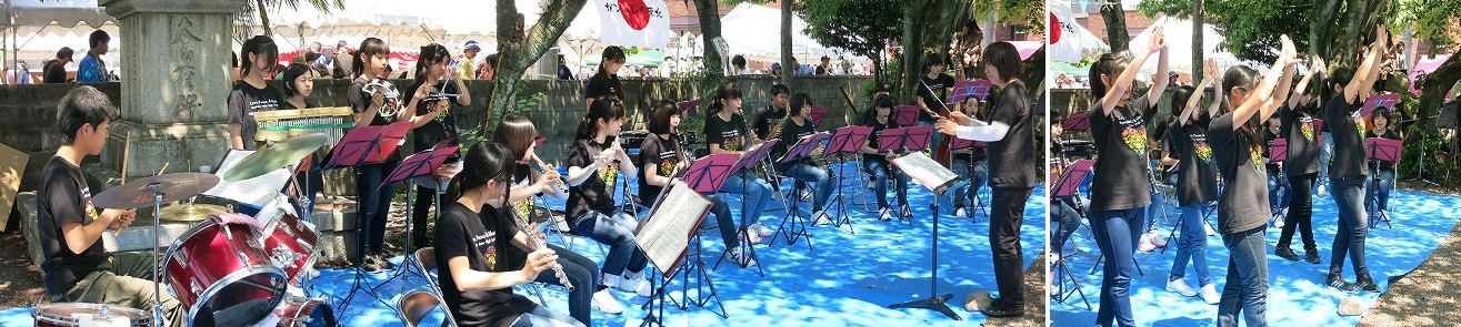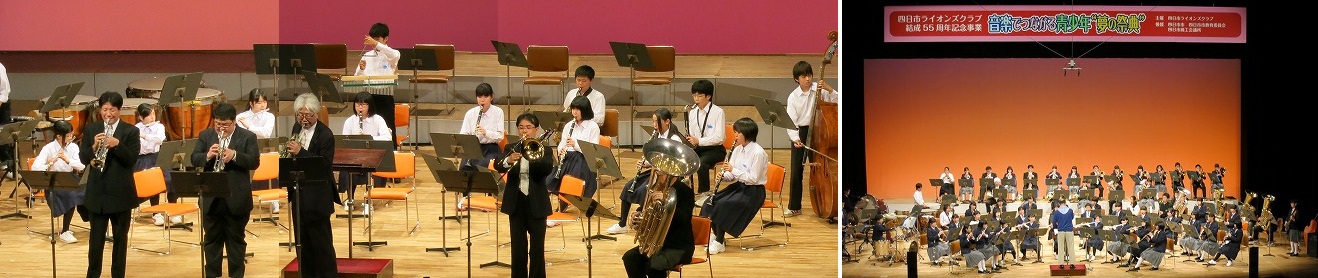 5月5日(火)、四日市ライオンズクラブ主催の「音楽でつながる青少年“夢の祭典”」に、内部中・港中・中部中の吹奏楽部と合同で出場しました。オープニングでは、ナゴヤシティブラスアンサンブルの方々と一緒に「花は咲く」を演奏しました。また、最後の4校選抜メンバーによる合同演奏に3年生が出場し、テレビでもおなじみの青島広志さんの指揮のもと、行進曲「Call To Victory」、「サバの女王」、「アフリカン・シンフォニー」を演奏しました。素晴らしい演奏で、観客の方々からはスタンディングオべーションが送られていました。 なお、この様子は、本日18:00からのCTYニュースで放映される予定です。 |