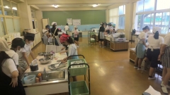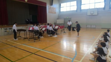 4限目から、橋北中学校音楽部のみなさんが、準備をしに体育館に入りました。