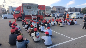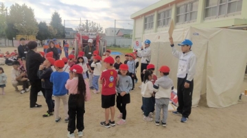 1限目 紙スリッパ・紙食器づくり 2限目 煙体験 3限目 消防車見学 4限目 備蓄品について