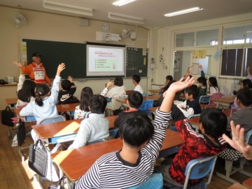 1限目 地震のメカニズム 2限目 起震車体験 3限目 家具転倒防止・応急手当について 4限目 みんなでつないで 初期消火