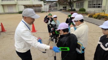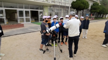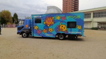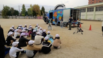 四日市市立博物館移動天文車「きらら号」が、今日、橋北小学校に来てくれました。1限目6年生、2限目4年生が観望しましたが、残念ながら曇り空のため、太陽や月があまり見えませんでした。曇り空の隙間から太陽がみえる時もわずかながらあり、子どもたちからは歓声があがっていました。