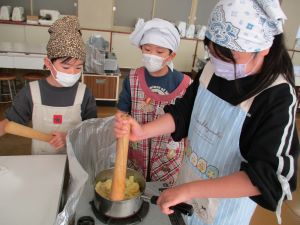 先日、つばさ学級の畑で収穫したさつまいもを使って、さつまいもパーティーを行いました。スイートポテトを作りました。いくつかの工程をみんなで協力しながら無事に出来上がり、楽しく「いただきます!」しました。職員室にもおすそ分けに届けに来てくれ、いただいた先生のお顔がほっこりになりました。みんなありがとう。