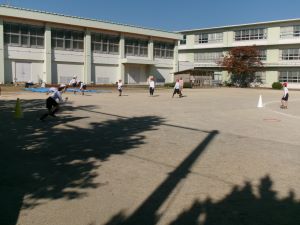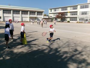 今日は天候に恵まれ、気持ちよさそうに運動場で5分間走や体育の授業ができました。3年生は、運動場でラケットベースがを行いました。どちらも全力で走ったりボールを追いかける姿が素敵でした。