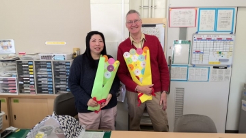 今日がHEFさんによる英語指導の今年度最終日となりました。4年生からは、授業終わりにお二人の先生に、一人ひとり英語で感謝の気持ちが書かれたメッセージカードが手渡されました。花束のようにみえて素敵です。