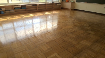 5限目に大掃除を行った後、6限目に5年生がワックスがけをしてくれました。