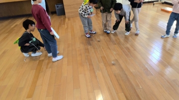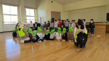3階ホールにて、顔合わせを行い、グループに分かれて学校探検をし、3階ホールに戻って昔の遊びで楽しみました。そのあと、1年生による橋北小学校の校歌を披露し、最後に1年生からのプレゼントを渡しました。