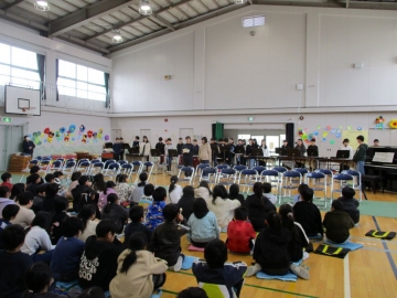 みんなと過ごした6年間を振り返った劇のあと、「ぼくらまた」の合唱・合奏を披露しました。今年度1年間、橋北小学校の「顔」として、1~5年生を支え続けてきた6年生。どの学年も精いっぱいの「ありがとう」を伝えていたと思います。