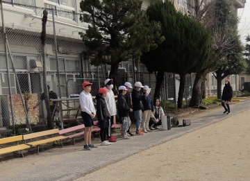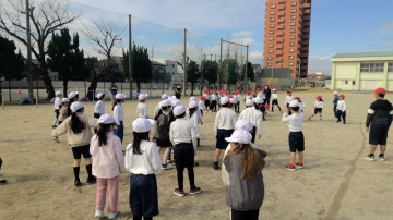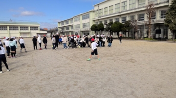 20分休みに、全校児童が運動場に出て、ドッチボールをしました。1年対2年、3年対4年、5年対6年で行いました。みんな楽しそうにやっていました。結果は、2年・4年・6年の勝利となりました。