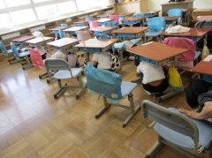 9月最初に実施予定だった避難訓練。雨天等により本日やっと実施しました。震度5の地震が発生したとの想定で訓練が開始しました。驚いたのは、全校児童の叫び声や話し声が一切聞こえてこなかったこと。机の下にいるときはもちろんのこと、運動場に避難するとき、運動場に集合した後、最初から最後までみんなが真剣な顔つきでおしゃべりをしない、整然と避難することができました。