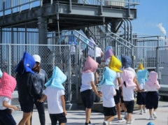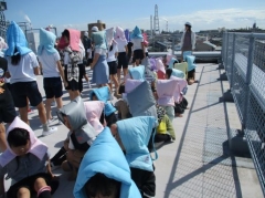 今回は1次避難のあと、津波を想定して特別棟校舎の屋上まで避難する2次避難をおこないましたが、こちらも歩いての移動中、屋上に上がってから降りるまでみんなが黙って真剣に取り組むことができました。橋北っ子、すばらしいです!!