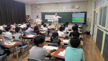 1学期に引き続き、2学期もHEFの方による英語の授業が月当たり1・2回予定されており、本日、2学期1回目の授業がありました。英語専科の先生とともに楽しく英語が学べるよう工夫していただいています。