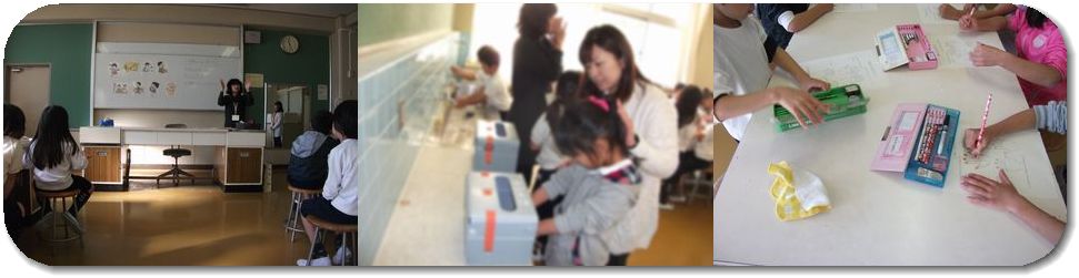インフルエンザやノロウィルスなどの感染症を防ぐための手洗い指導を行いました。はじめに、手洗いチェッカー用ローションを手に塗って、その後、いつものように手洗いをします。きれいに洗ったあと、手洗いチェッカーの箱の中に手を入れてみると・・・どの子の手も爪のまわりや指の関節の辺りが光ります。しっかり洗っているつもりでも、意外と汚れが落ちていないことが分かりました。手洗いのポイントとして「@石鹸であらう」「Aゴシゴシあらう」「Bきれいなハンカチでふく」ことを教えてもらいました。