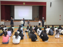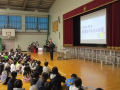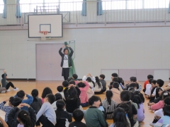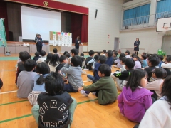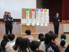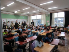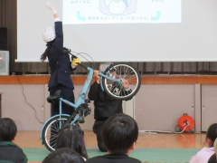 今日は、「とみまつ隊」の方々をお招きし、1年生と4年生を対象とした交通安全教室を行いました。毎年度、1年生と4年生を対象とした体験学習を実施します。横断歩道の歩き方や自転車の乗り方など、あらためて学習することで、実生活で役に立て、「自分の命は自分で守る」ことができる子どもたちを育てていきたいです。