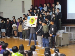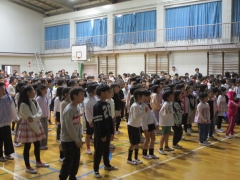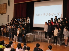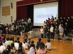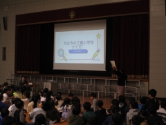 式は、6年生の子どもたちが、企画、司会進行、運営まで取り組みました。6年生が「こんね三重小学校にしたい!」と考えた学習発表、全校児童による三重小クイズ、全員合唱など、子どもたちが中心となった、子どもたちのための式でした。