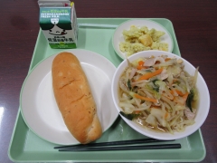 今日の給食は、「米飯・牛乳・あじとさつまいもの中華いため・ワンタンスープ」です。今月の給食目標は「食べ物のはたらきについて考えましょう」です。おもに体をつくるもとになる肉や魚、卵、大豆、牛乳等の赤のなかまの食べ物、美味しくいただきました。ごちそうさまでした。