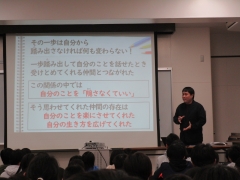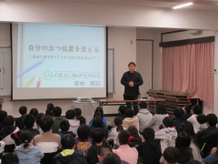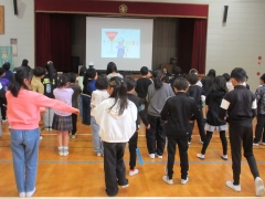 6年生は、津市にある反差別・人権研究所みえ(ヒューリアみえ)から原田朋記さんを講師としてお招きし、「自分の立つ位置を変える」と題して、ありのままの自分を出していく学級のなかまづくりにつながる話を、どこに生まれたか、どこに住んでいるかを理由に差別をする人がいるという問題や自分ががんばっても変えられないことを理由にした差別の問題、そして、いじめの問題と重ね合わせてしていただきました。卒業までの5か月、自分のことをみつめ、友だちのこともみつめ、誰も放っておかない関係を築き、誰もが居やすい学級、学校をみんなで創っていこうとしている6年生の子どもたち、楽しみにしています。
