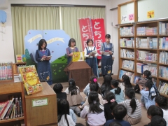 昨日から今日にかけて、三重小学校図書ボランティアのとちぼこさんによる読み聞かせを実施しました。各学年に応じた本を選び、読み聞かせていただきました。とちぼこさんと本の世界に引き込まれて集中して聴いている子どもたちが印象的でした。