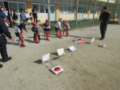 3年生では、火災を防ぐための学習を社会科で学習していますが、今日は、その一環として中消防署の方々をお招きして「防火教室」に取り組みました。煙体験、水消火器等の体験をしました。