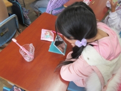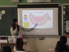本校では、歯磨き指導に取り組んでいます。今日は、2年生を対象として、「奥歯がしっかりとみがけているか」というテーマで学習をしました。鏡で実際に自分の奥歯を見たり、歯磨きをしてみたりしました。ぜひ、毎日の家庭での歯磨きにいかしてほしいです。