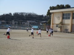 体育の時間に「5分間走」を始めています。体育の時間の始まりには、その時期や運動の内容によって5分間運動を導入しています。その5分間運動の時間帯を使って5分間走に取り組んでいます。5分間で走ることができる距離を伸ばしていくことを目標にしています。穏やかな天気の日を選んで取り組みを始めています。