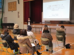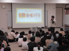 フリー参観の後は、「三重っ子子育てワーク」をPTA文化教養部に主催していただきました。主体会病院の河野理学療法士をお招きして、「理学療法士から学ぼう 私のカラダ~ケガの予防と姿勢について考えよう~」と題して、ご講演とストレッチング指導を5年生の子どもたちとともにしていただきました。寒い中ではありましたが、たくさんの方に参加していただきました。文化教養部長さんをはじめ、文化教養部のみなさま、準備から運営まで、ありがとうございました。
