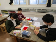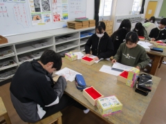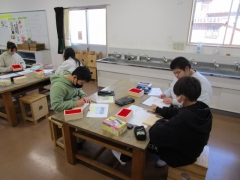 6年生は図工の学習の中で、卒業記念制作である「グランドボックス」づくりに取りかかっています。下絵を完成させ、本体の木箱に下絵を写していく作業に取り組んでいました。ひとりひとりの思いをこめた卒業記念制作、完成が楽しみです。