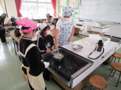 5年生は、家庭科の時間に「ごはんとみそ汁」の調理実習を始めています。にぼしでだしをとったみそ汁、鍋で炊いたごはんです。身近にある材料で調理を楽しむことができるようになることも大切です。たくさんの調理体験を積み重ねてほしいと思います。