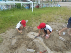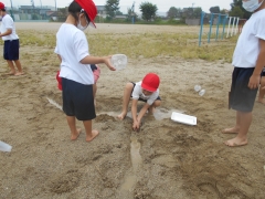 ★いろんな道具を使ったり、水路を作ったりして泥の感触を楽しんでいました。