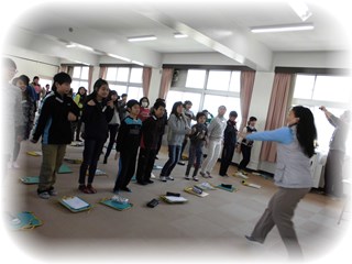 みんなでスケルトンダンスを踊り、そのあと挨拶ビンゴをしました。