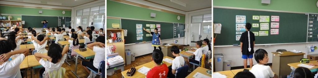 「ぐう・ぺた・ぴん」を合言葉に,正しい姿勢を身につける学習をしました。また正しい姿勢が身につくと集中力や内臓機能が高まったり骨が正しく成長したりすることを教えてもらいました。これから教室でも家庭でもよい姿勢で過ごしたいと思います。