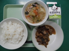 ★今日の給食はぶりのみそ煮と大根と里芋のそぼろ煮でした。ぶりのみそ煮は一口サイズのぶりとごぼうが一緒に煮込んであり、とても食べやすかったです。