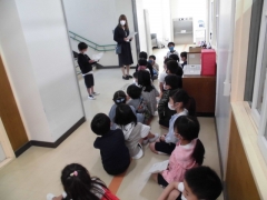 説明が終わった後、1年生の子どもたちから「少し早くてわかりませんでした」という声が上がると、もう一度ゆっくりわかりやすく話していました。