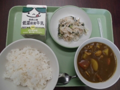 ★今日の給食はカレーと大根サラダでした。大根サラダの中にはちりめんじゃこや小松菜が入っていてカルシウム満点!おいしくいただきました。