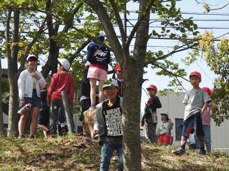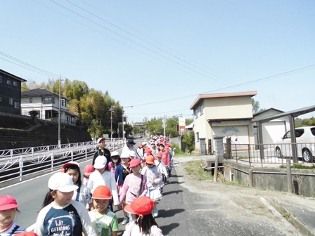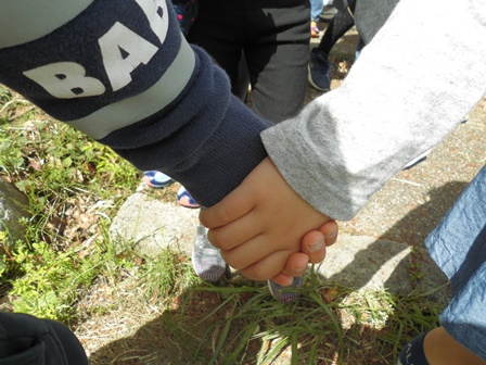 今日は,2年生と一緒に三重地区の公園へ散歩に出かけました。例年だとそこに咲く桜並木を楽しみに行くのですが,今年は時期がずれてしまって,すでに葉桜となってしまっていました。それでも,子どもたちは元気に遊びまわっていました。中には,ペアを組んだ2年生の子と一緒に遊んでいる子もいて,とても微笑ましかったです。行きと帰り道では,一緒に手をつないで歩くなど,いいお兄さん,お姉さんぶりを発揮していました。