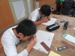 しおり作りでは小さな刃で紙を切るのに苦戦しながらも,集中し,