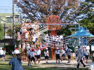 公園についてからは、学級や学年を超えて一緒に遊んだり、