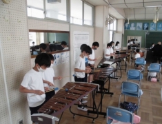 ★4年生の音楽の様子です。今は木琴・鉄琴、打楽器を使って、合奏の練習をしています。とても集中して演奏していました。完成したら、また聞かせてくださいね。