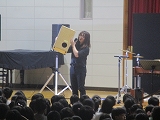 マリンバ樹さんに来ていただき、全校でマリンバの音色を楽しみました。