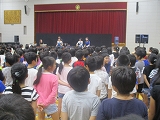 アンコールでは全校で演奏に合わせて三重小学校の校歌を元気に歌いました。