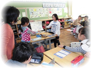 12月に入って算数(面積の求め方を考えよう)の単元はT.Tの担当を入れ代わって行っています。第1次は平行四辺形の面積の求め方を考えあいました。