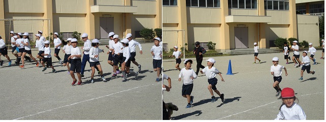 11月は20分休みを利用してかけ足運動に取り組んでいます。自分のペースで5分間走りきる力を調整できるように取り組んでいます。体育の時間でも時間を取り,同じペースで走るように取り組みます。一段と寒くなってきていますが,外で元気に走り回れるようになってほしいと思います。