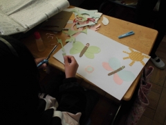 ★2年生は紙はんがに挑戦。様々な素材のシートを使って作成していました。