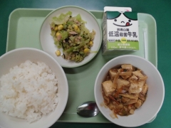 ★今日の給食は三重豚の麻婆豆腐とひじきサラダでした。↓お昼の放送での紹介です。