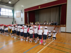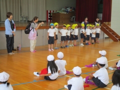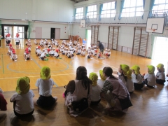 今日は、1・2年生の運動会の練習を三重幼稚園の園児たちが見に来ました。あいにく雨が降り出しましたが、きちんと一列に並んで歩いていて感心しました。体育館では、舞台の上からダンスを見学しました。1・2年生は、いつもの通り、楽しそうに踊り、三重幼稚園の園児たちに小学校の楽しさを伝えていました。来年度入学する子どもたち、小学校への入学に向けて、段差が少しでも低くなればと思い、取り組みを続けていきます。