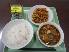 今日の給食は、「米飯・牛乳・鶏肉とれんこんの甘酢がらめ・スタミナみそ汁」です。すっぱいものを食べると、疲れのもとになるものを取り除いてくれたり、唾液や胃液をたくさん出したり、脳の動きが活発になったりします。食欲が増します。美味しくいただきました。ごちそうさまでした。