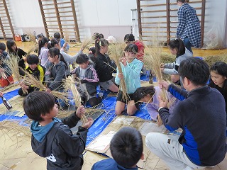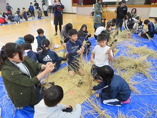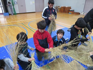お米の学習として,5月に田植えを行い,9月にはその稲を刈り,そして学習の締めくくりとして「しめ縄づくり」を行いました。苦戦する姿が見られましたが,少しずつコツをつかみ,上手にしめ縄を作っていきました。日本の伝統文化にも触れる良い機会になりました。ご協力いただいたみなさま,本当にありがとうございました。