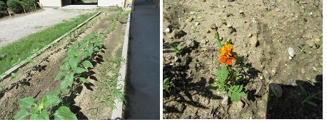 4月にホウセンカ,マリーゴールド,ひまわりのたねを植えました。最初はポットから芽が出て喜んでいました。ポットから畑へ植え替えて,すくすくと生長してきています。子どもたちから,「マリーゴールドの花が咲いとる~」と言ってきました。小さな変化に気づく子どもたちの気づきは,これからも大切にしていきたいですね。
