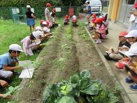 夏休み直前!植物の観察をしました。理科の学習でホウセンカ・マリーゴールド・ひまわりを育てます。植物には「根・くき・葉」があることを学習し,その勉強がわかるように観察・記録しました。夏休みの間,大きく生長することだと思います。次に観察するのが楽しみです。