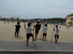 ★6年生を中心に、竹馬を使って遊んでいる子どもたちが増え、ちょっとしたブームになっています。